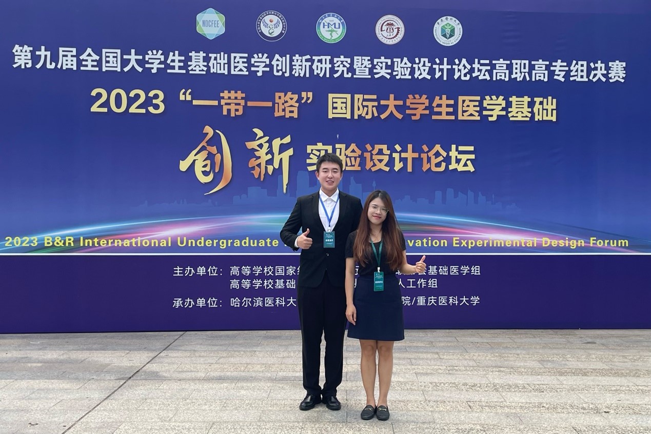 在共建“一带一路”倡议提出的十周年之际,为了加强国内及“一带一路”国际合作和交流,高等学校国家级实验教学示范中心联席会基础医学组和高等学校基础医学创新创业协同育人工作组举办2023年“一带一路”国际大学生医学基础研究创新设计论坛(以下简称“一带一路”国际论坛)。“一带一路”国际论坛采用全英汇报和答辩的形式,通过学校遴选代表项目、国内赛道复赛和国际赛道决赛的三阶段赛制,本次论坛共有来自全国各地63所高校的63支代表队伍参加国内赛道复赛,在复赛评比中获得一等奖与二等奖的共30项作品入围决赛,并与来自俄罗斯、白俄罗斯、阿塞拜疆等国家的共30支国际队伍一起角逐金奖(20%)、银奖(30%)、铜奖(50%)以及单项奖。我校检验学子以良好的精神风貌、流畅地汇报答辩以及默契的团队协作赢得了专家的认可与肯定,一路披荆斩棘获得总决赛银奖。