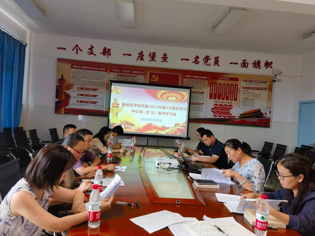 为进一步统一思想、深化认识,打牢专题民主生活会思想和理论基础,8月25日下午,基础医学院党委在党员之家召开理论学习中心组(扩大)集中学习会。会议由基础医学院党委书记朱开梅主持。基础医学院党政领导、党委委员、党支部书记、组织员参加会议。