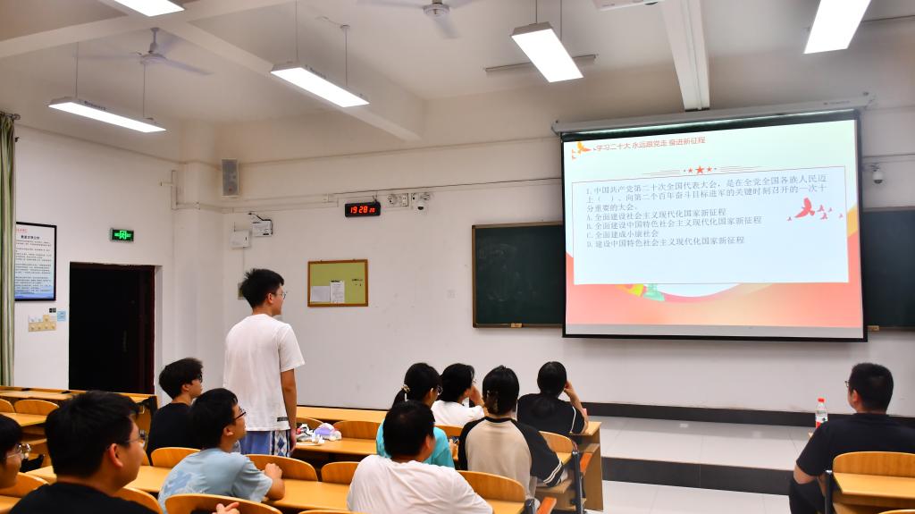 宣讲活动包括四个部分。第一部分是“团的基础知识”主题团课。学工办老师王珂给同学们介绍了团旗、团徽、团歌、入团誓词、团员的权利和义务等团的基础知识,让同学们加深对基础团务的了解,切实提高同学们的思想觉悟和理论素养。第二部分是“在新时代新征程上书写青春篇章——学习中国共产主义青年团第十九次全国代表大会会议精神”主题团课。学工办主任蒋艳平号召同学们坚持以习近平新时代中国特色社会主义思想为指导,踔厉奋发、勇毅前行,为强国建设、民族复兴伟业团结奋斗。第三部分是“奋跃而上,激扬青春力量——学习贯彻党的二十大精神”主题团课。党委副书记黄宇平围绕“青春”这一主题,给同学们分享了许多青春故事。他鼓励同学们珍惜青春、积极进取,以奋斗姿态激扬青春,不负时代,不负华年。第四部分是个人奋斗故事。2022年度“广西优秀共青团员”获得者冯荣华围绕“坚定理想,不忘初心”的主题,从思想、学习、科研及志愿服务等方面讲述自身成长故事,鼓励同学们勇于尝试新事物,争做时代新青年。为教育引导广大团员青年学党史、强信念、跟党走,团结引领广大团员青年在学思践悟中踔厉奋发、笃行不怠,此次宣讲会上还开展了两轮党史知识有奖竞答。同学们踊跃参与,积极答题,达成了以赛促学的目的。