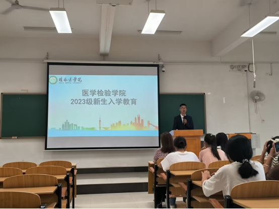 秋风徐徐吹,正值新生入学时。为帮助2023级新生更全面了解学校及学院情况,尽快适应大学生活,提前做好大学规划,9月12日-13日,医学检验学院在临桂校区公共教室北楼N203教室开展新生入学教育系列活动。医学检验学院党委书记李云秋、院长刘洪波、党委副书记黄晨、副院长尹铁球,新生班级辅导员、导师、班主任以及全体2023级新生参加活动。