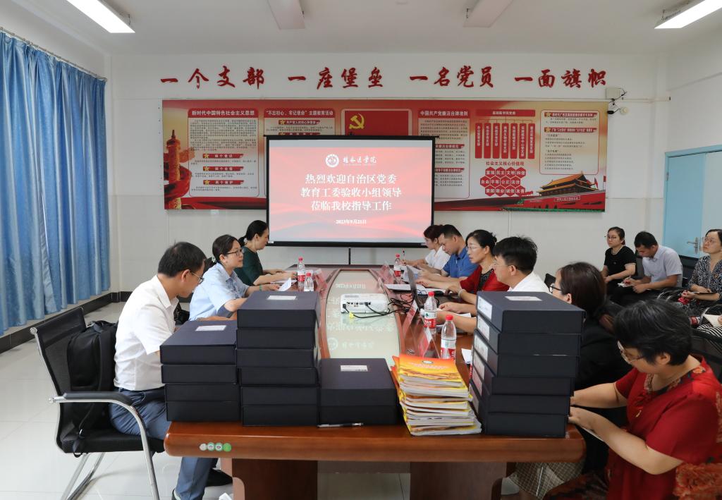 近日,自治区党委教育工委第六验收小组组长,广西工商职业技术学院党委组织部部长、人事处处长郑华一行3人到桂林医学院基础医学院,开展首批新时代广西高校党建“双创”验收工作。会议由学校党委组织部常务副部长、机关党委书记韦日明主持,基础医学院党委书记朱开梅,基础医学院党委副书记、纪委书记谭宁,基础医学院副院长、机能学党支部书记祝宁侠及学校、各二级学院部分党务工作者参加会议。