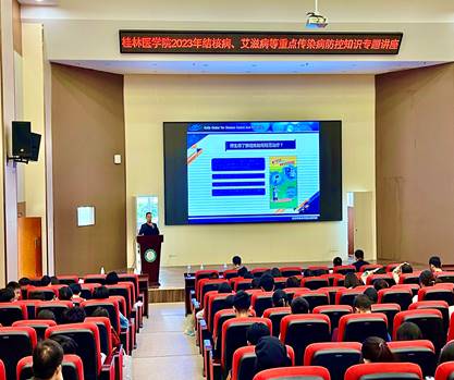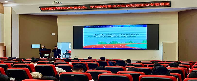 为进一步提高我校师生对传染病防控知识的知晓率,做好我校重点传染病防控工作,10月10日下午,后勤管理处在临桂校区国际教育交流中心一楼报告厅举办结核病、艾滋病等重点传染病防控知识专题讲座。本次讲座邀请桂林市疾控中心副主任阳冬和结核病防制科科长邓玄进校授课宣讲。学生工作部(处)、研究生工作部、国际教育学院、各二级学院(系)分管学生工作负责人,全体专兼职辅导员、卫生科医务人员、各班班级代表等240余人参加培训。