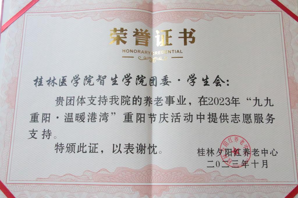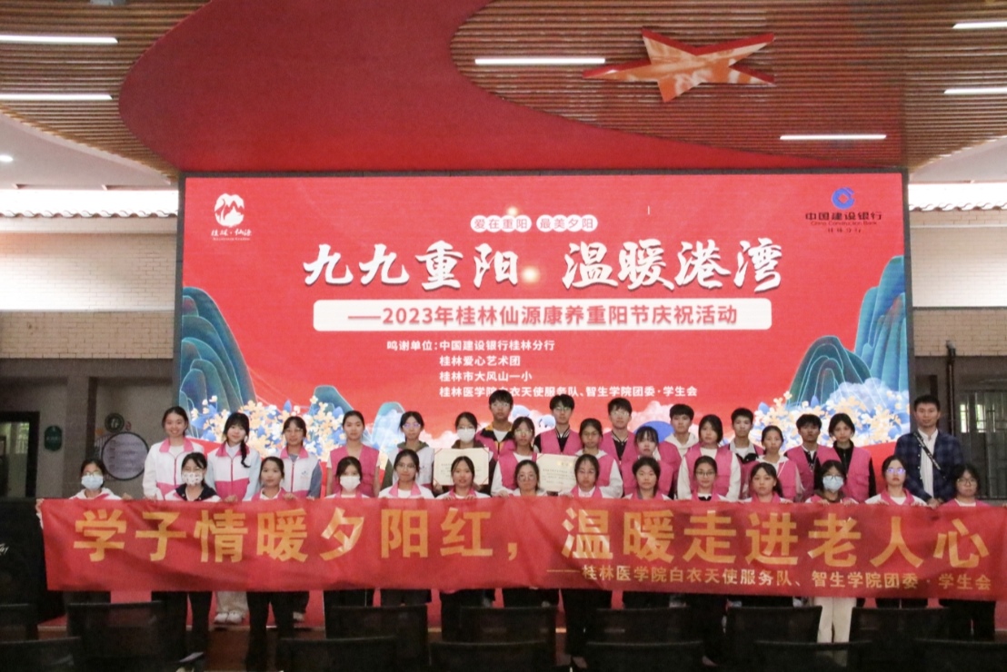 10月21日,智能医学与生物技术学院联合桂林夕阳红养老中心举办“九九重阳,温暖港湾”重阳节庆祝活动。学院15名志愿者代表前往养老中心参与此次活动。