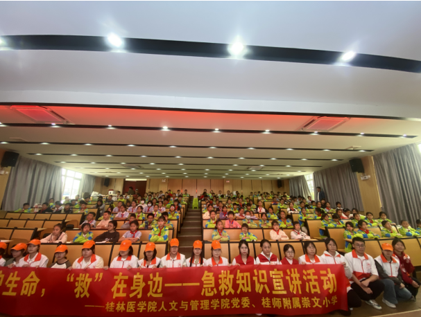 “秋日薄暮,人与桂花皆醉。”为进一步培养同学们的自救互救意识,提高急救技能,助力“实施健康中国战略”,人文与管理学院党委组织师生党员、“人文·先锋”志愿服务队,于10月27日前往桂林师专高等专科学校附属崇文小学,开展以“守护生命,‘救’在身边”为主题的急救知识宣讲与培训活动。