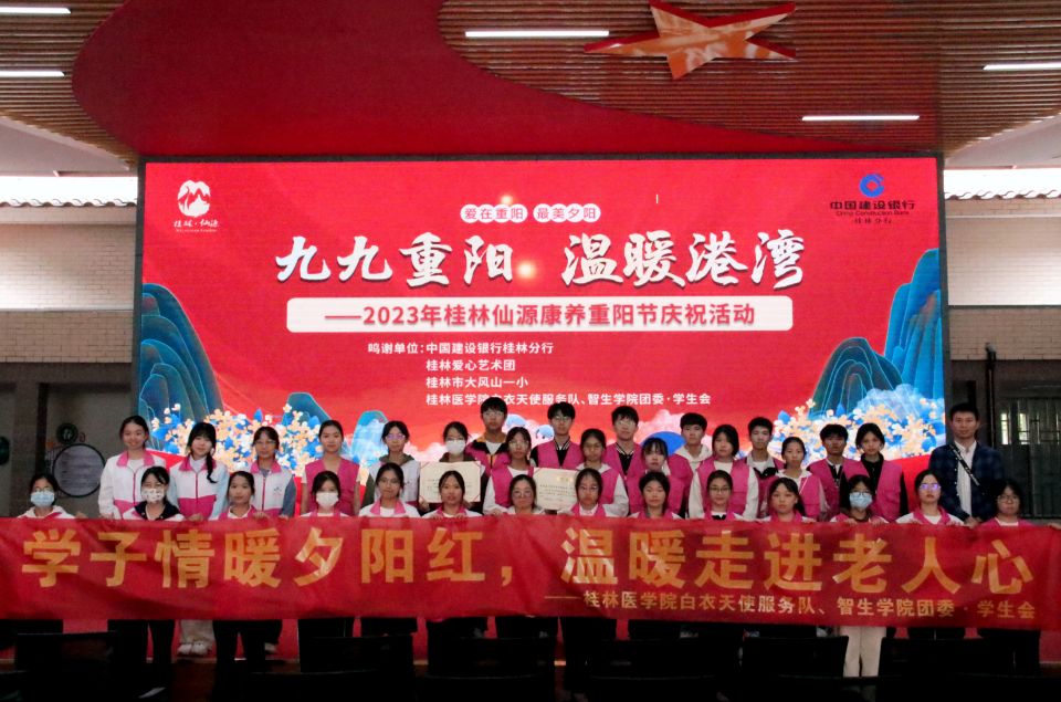 为弘扬中华民族尊老、敬老、爱老的传统美德,发扬新时代青年“奉献、友爱、互助、进步”的志愿服务精神,10月21日,护理学院联合智能医学与生物技术学院开展“学子情暖夕阳红,温暖走进老人心”为主题的重阳节敬老活动。护理学院白衣天使志愿服务队志愿者走进桂林夕阳红养老中心,向老一辈传递温暖与关怀。