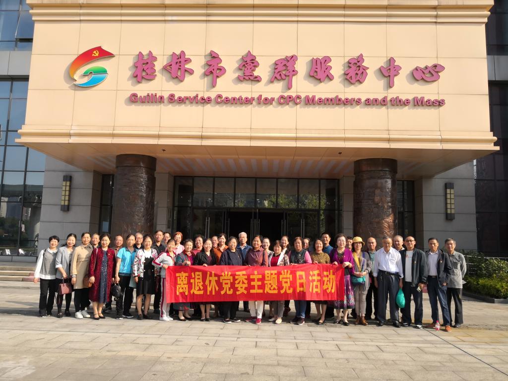 为深入学习贯彻习近平新时代中国特色社会主义思想,加强党员党性教育,10月30日上午,离退休党委组织党员到桂林市党群服务中心开展“学思想强党性 守初心葆本色”主题党日活动,近50名老党员参加活动。