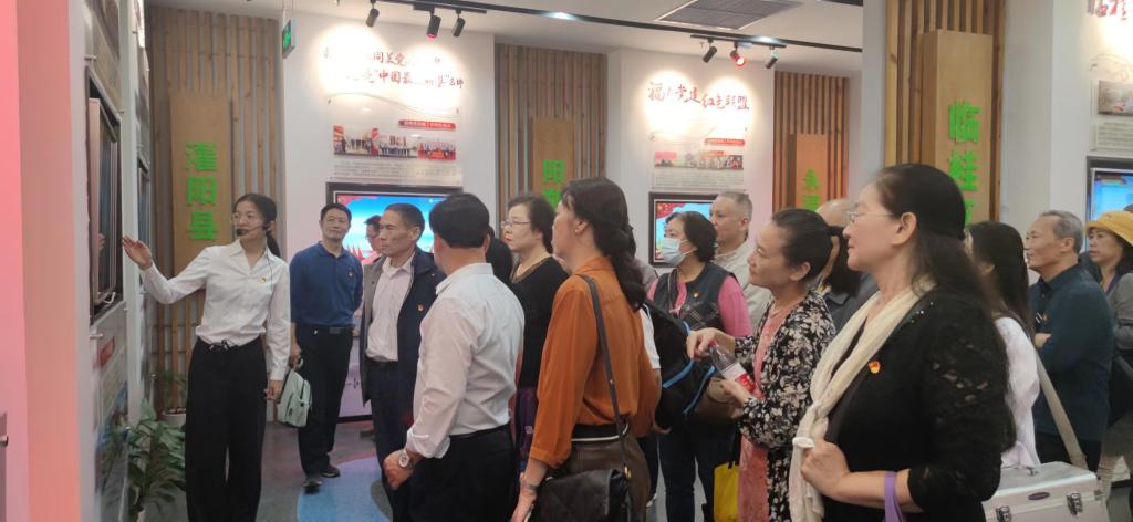 桂林市党群服务中心是一个集教育、管理、咨询、培训、服务、体验于一体的党群工作平台,是全市党员教育培训的示范基地。活动中,老党员们认真聆听讲解员的讲解,先后参观党史党建展厅、党员志愿者服务站、交互体验区、红色影院等区域,回顾红军长征过桂北的艰难革命历程,进一步学习党的二十大精神,充分了解桂林市抓党建促高质量发展在各项社会事业取得的丰硕成果,观看《入党》《圆梦》等微视频,聆听一个个优秀党员、先进榜样的感人事迹,从中汲取砥砺奋进的精神力量。面向鲜红的党旗,全体党员重温入党誓词,以铮铮誓言表达践行誓词、终生不渝的心声和信念。