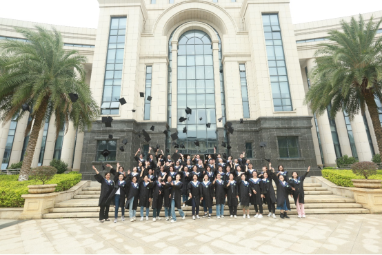 临桂图书馆合影:同学们开心地穿上学士服,以弥补2003年毕业时未拍学士服照的遗憾……