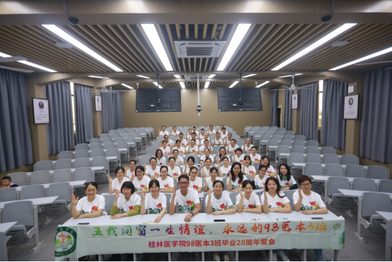 10月14日,时值金秋。在阔别母校20周年后,临床医学专业98医本3班的64名同学,带着全班81名同学的的愿望,携着回忆,满怀期待,从各自的工作地而来,他们大部分任职于广西各地,少部分从广东、海南、江苏等地赶来,齐聚桂林母校,共叙师生同学情,追忆往昔五年求学经历,分享二十年来彼此的成败得失,共同畅想美好未来。