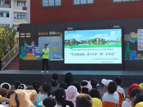 为增强小学师生在突发事件中的急救意识和自救互救能力,使师生掌握急救基本知识和技能,进一步深入推进平安和谐校园建设,近日,桂林医学院白衣天使志愿服务队走进桂林市辰山小学开展急救知识宣讲和技能培训志愿服务活动。