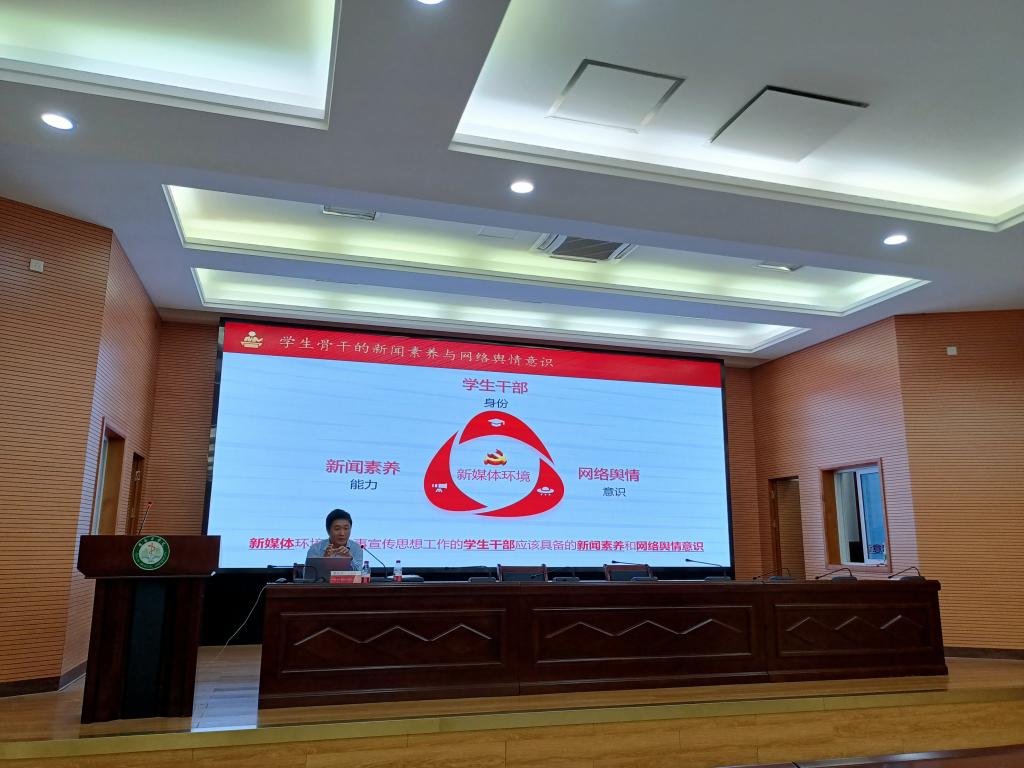 校党委常委、统战部部长李海林,学生工作部部长、研究生工作部部长龙亮,人文与管理学院院长、MPA教育中心主任石武祥,桂林航天工业学院党委宣传部、党委教师工作部副部长周志高,分别作了题为“民族宗教相关知识”“阅人物 悟风雨—讲好中国的故事”“学生骨干领导力提升”和“学生骨干的新闻素养与网络舆情意识”的专题报告。