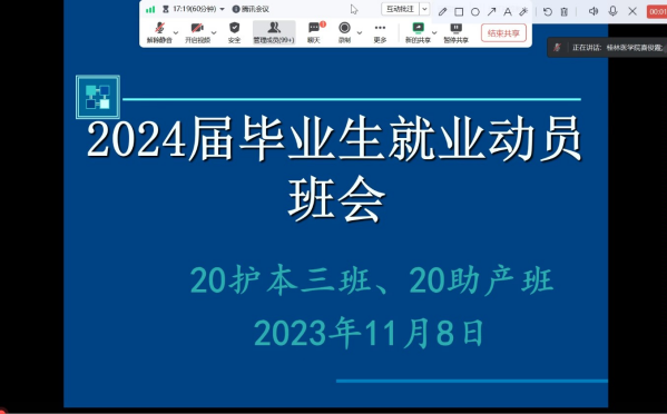 护理学院2024届毕业生就业动员会的召开,既是对就业工作的高度重视,也是关怀学生的重要体现,不仅吹响了毕业生开赴求职战场的号角,还为全体毕业生就业工作打了一剂强心针,对同学们走好迈向社会的第一步具有重要的指导意义。我们相信同学们会更加理性地作出适合自己的职业选择,有目标、有梦想,立足实际,积极就业。