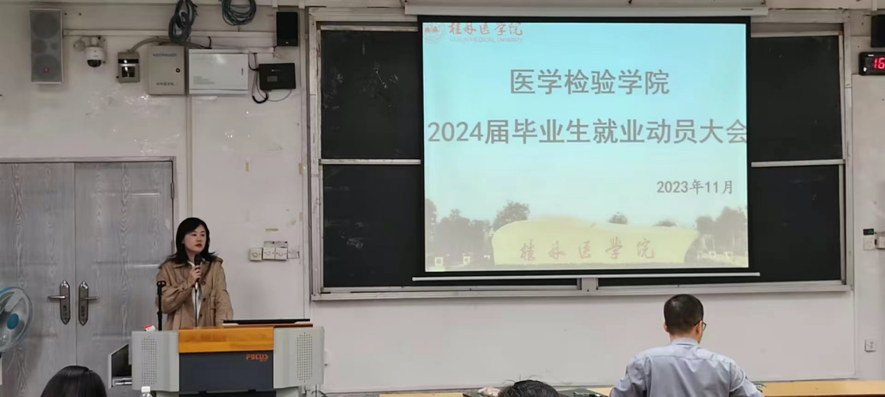 为进一步帮助2024届毕业生认识目前就业形势,了解就业方向,明确就业目标,医学检验学院于11月10日在东城校区CR107教室召开2024届毕业生就业动员大会。医学检验学院党委副书记黄晨、毕业班辅导员以及全体2024届毕业生参加会议。
