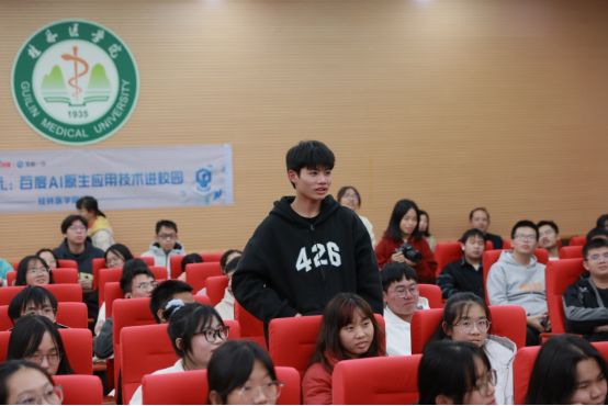 座谈结束后,在明德楼101会议室进行主题为“生成未来:百度AI 原生应用技术进校园”的宣讲活动,智能医学工程专业全体在校学生参加。