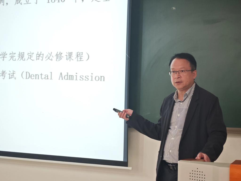 秦明群介绍了桂医口腔的发展历程,深度剖析了口腔专业国家政策走向,梳理了国内外口腔医学专业的现状与发展状况,同时,就口腔医学专业学生的教育培养、市场需求以及职业发展等方面与同学们进行分享、内容丰富、数据详实,帮助同学们树立专业自信,明确了努力的方向。