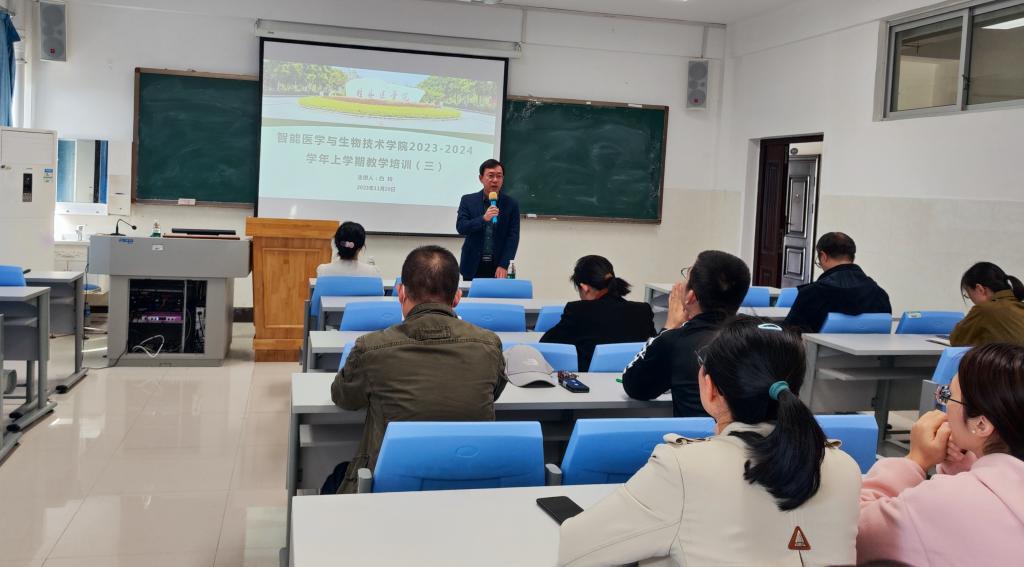 为深入推进教育教学改革,提高教师教改研究的水平和质量,11月28日下午,智能医学与生物技术学院举办专题培训会。学院领导班子、教学管理科、专任教师参加了此次培训。会议由智能医学与生物技术学院院长孙立元主持。