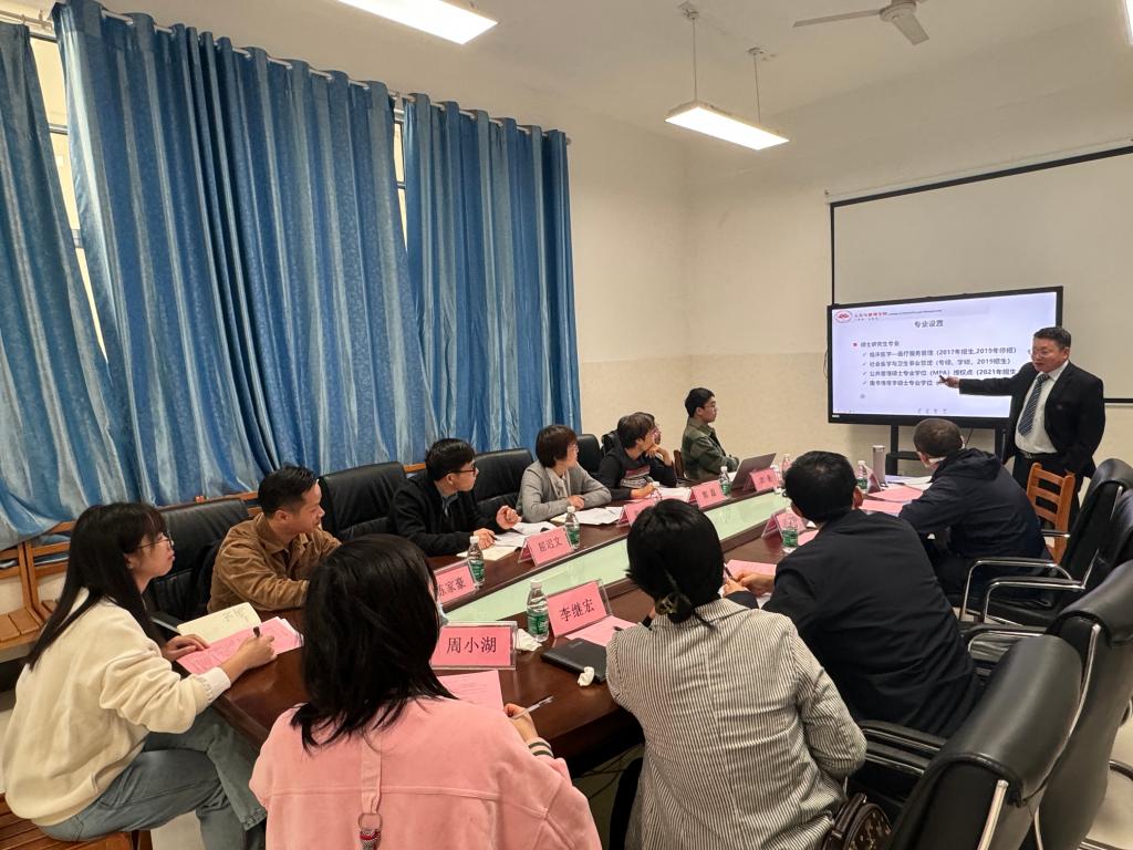 11月29日上午,右江民族医学院公共卫生与管理学院院长郭蕊教授一行7人前来人文与管理学院考察交流。座谈会在人文楼108会议室召开。人文与管理学院院长石武祥,副院长苗耀祥、刘栩,部分教师代表及相关教学管理人员参加了座谈会。