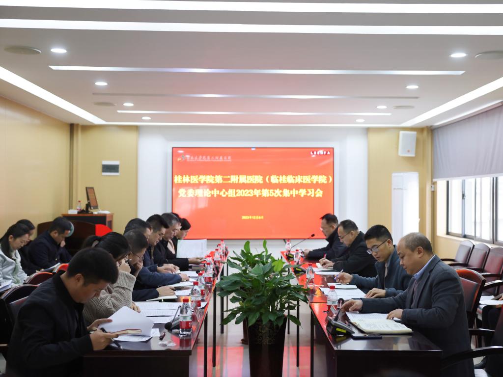 12月6日,第二附属医院(临桂临床医学院)党委召开理论学习中心组2023年第5次集中学习会。学校党委常委、纪委书记韦政权,党委宣传部韦延斌到会指导。医院全体在家院领导、党委委员,党委理论中心组成员参加会议,会议由医院党委书记葛波主持。