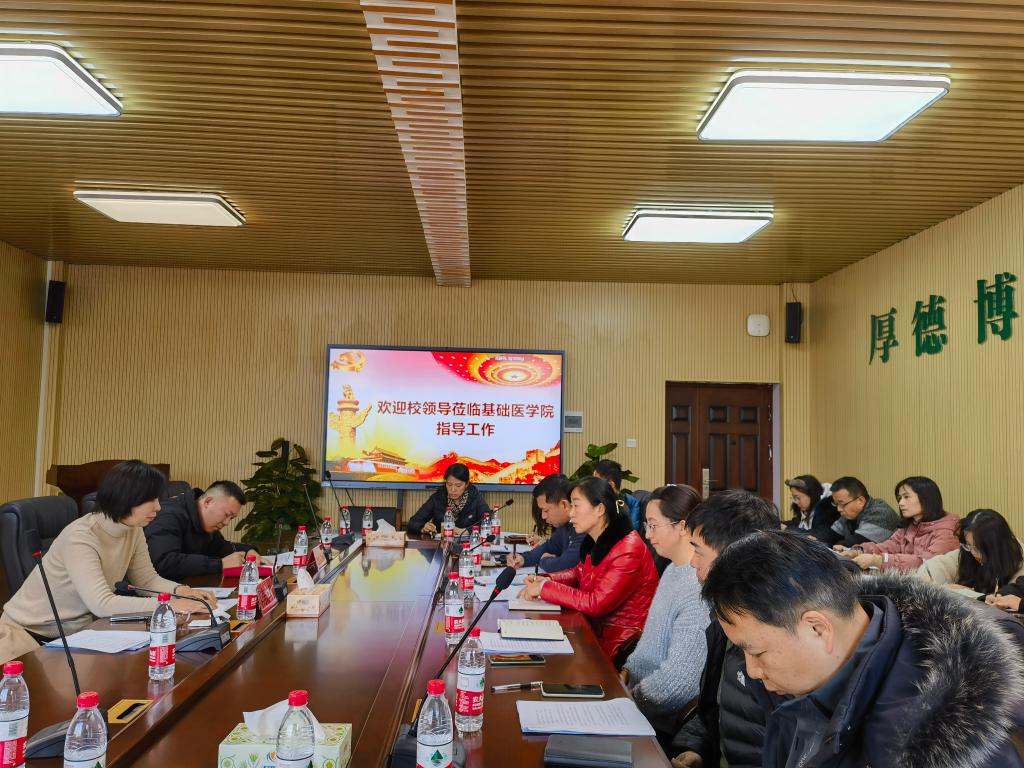 近日,基础医学院党委在基础楼1501会议室召开理论学习中心组(扩大)集中学习会。校党委常委、副院长陈旭及相关工作人员到会巡听旁听指导。会议由基础医学院党委书记朱开梅主持。基础医学院党政领导、党委委员、党支部书记、组织员参加会议。