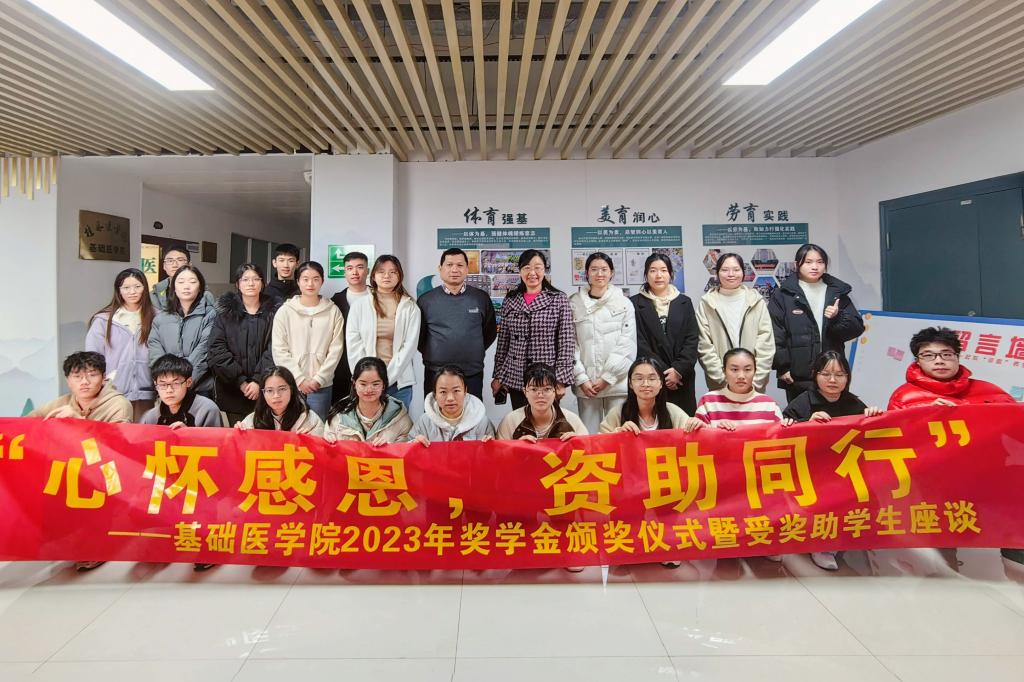为全面落实国家资助政策,切实提升资助育人实效,深入挖掘奖学金等资助政策的育人功能,12月12日下午,基础医学院在基础楼1501会议室开展2023年国家励志奖学金、自治区人民政府奖学金颁奖仪式暨受奖助学生座谈会活动。学院党政领导、辅导员代表以及受奖助学生代表参加活动。