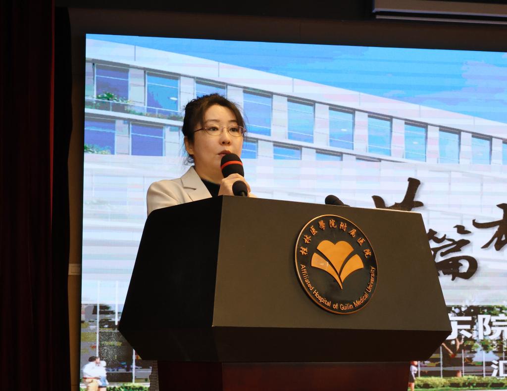 附属医院院长汪丽燕作题为《谋篇布局再攀高峰——漓东院区项目建设情况汇报》,对漓东院区一期工程建设进度和启动二期工程相关事宜进行了介绍。