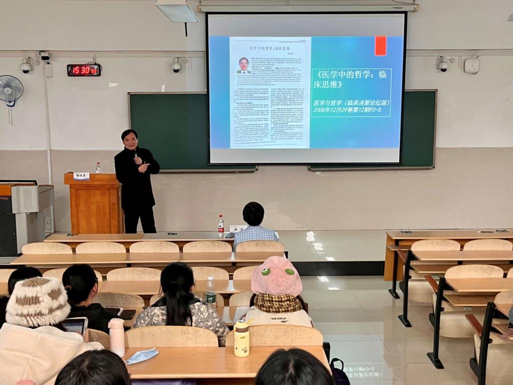 梅铭惠教授讲授的《临床思维培养》专题讲座异常精彩,学生们掌声不断。他从临床思维的定义、特点入手,通过临床真实的病例分析,讲授了正确的临床思维应包含勤于实践、良好的三基、感性认识必须上升为理性认识、正确认识共性与个性几个要素。他希望全科的学子们在实习的过程中要特别注重正确的临床思维能力的养成。最后,梅教授告诫大家:“行医如履薄冰、如踩虎尾,应拥有缜密的思维和保持严谨的态度”。
