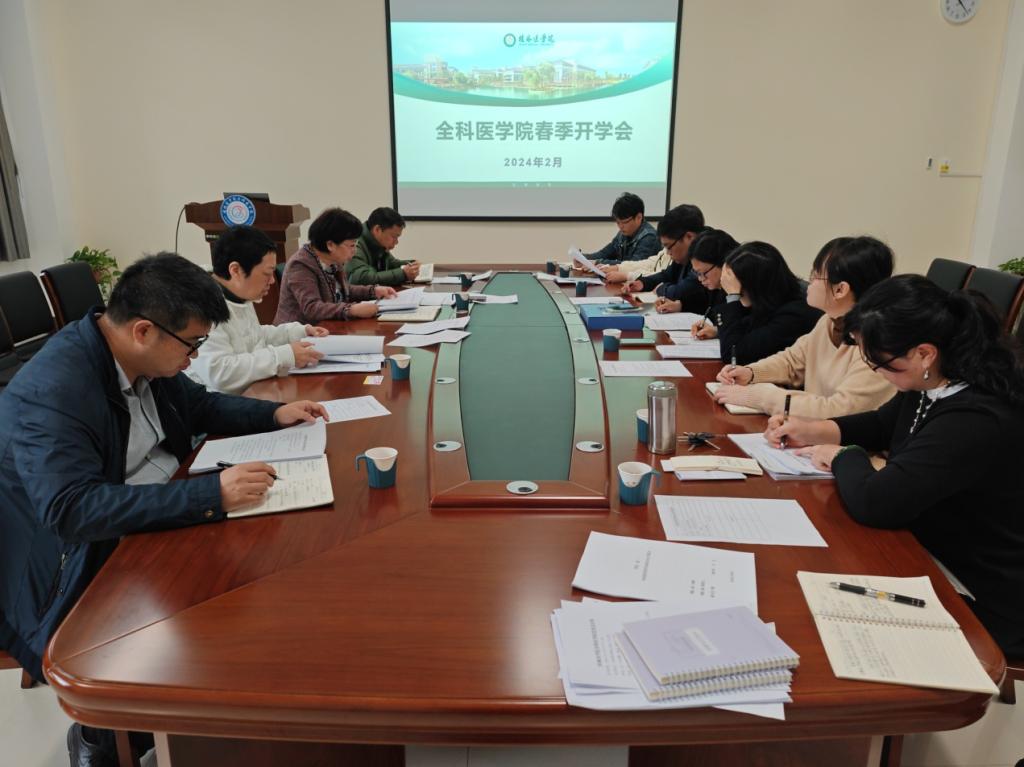 为有效促进新学期各项工作有序开展,2月21日上午,全科医学院在临床教学中心211召开开学工作会议,党委书记马明霞、院长郑楚、党委副书记潘涛、专职组织员周长春及全体教职工参加会议,会议由院长郑楚主持。