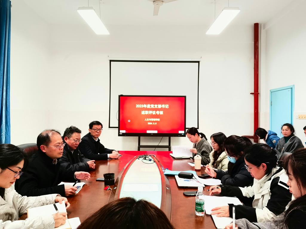 3月5日下午,人文与管理学院党委在人文楼108室举行2023年度党支部书记述职评议考核会议。学院党委委员、纪委委员、专职组织员、党支部书记、党员代表、无党派人士、群众代表参加会议。
