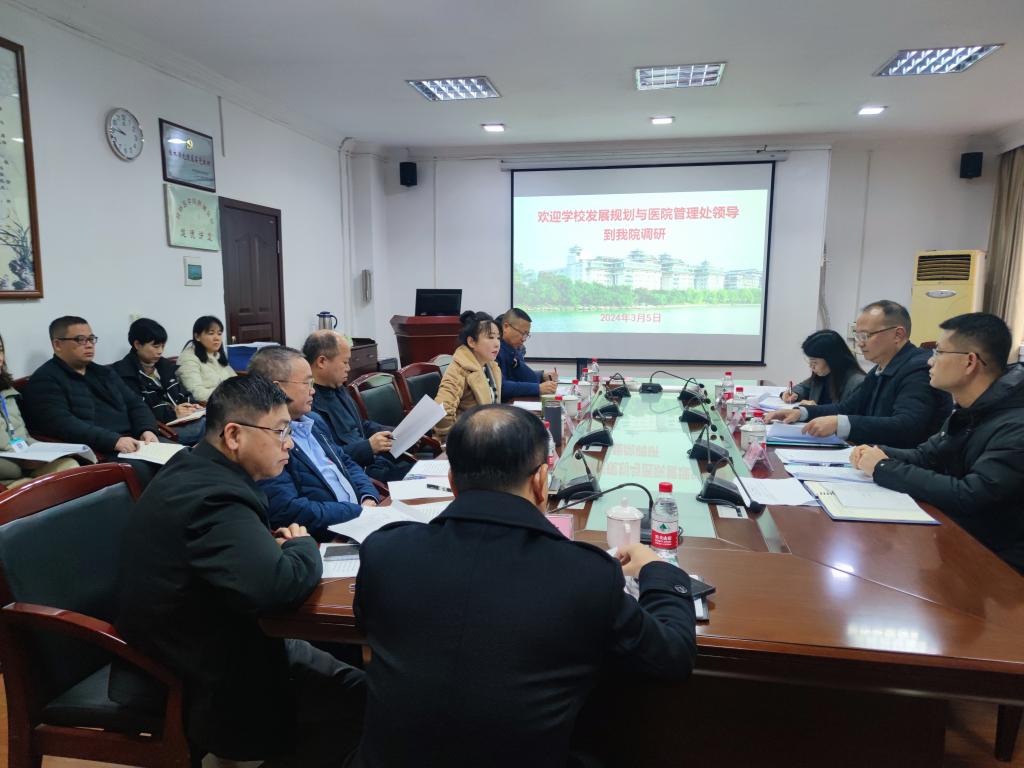 为推动更名大学、医药领域腐败问题集中整治、学科建设和“十四五”规划中期评估等重点工作开展,近日,发展规划与医院管理处到直属附属医院开展相关工作调研。医院领导班子成员及相关职能部门负责人参加调研座谈。
