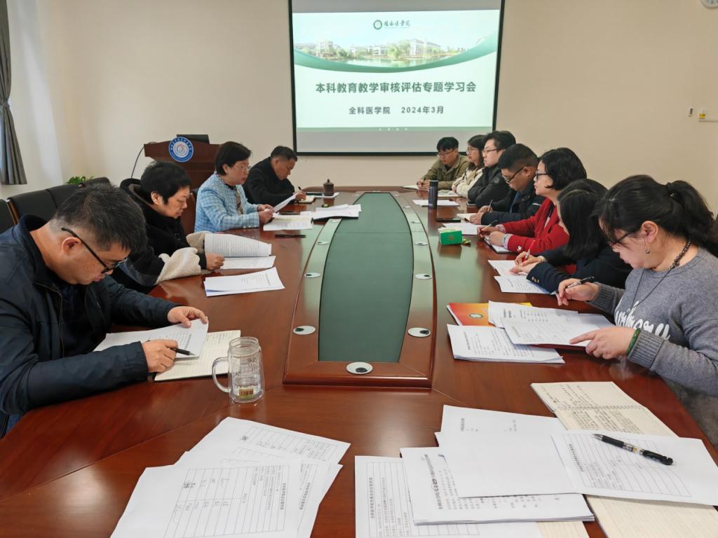 为扎实推进本科教育教学审核评估工作,深化审核评估内涵理解,切实做好本科教育教学审核评估准备工作,全科医学院于3月12日上午在211会议室召开本科教育教学审核评估专题学习会。学院全体教职工参加学习。