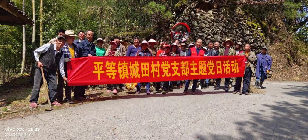 草长莺飞,春回大地,2024年是全国第46个全民义务植树节,为全面践行“绿水青山就是金山银山”的理念,绿化环境,美化家园,3月12日,桂林医学院派驻龙胜县平等镇城田村第一书记唐中能积极组织村“两委”班子、村党员干部,开展“守住绿水青山,打造金山银山,共建美好家园,助推乡村振兴”植树护树主题党日活动,以实际行动推进生态文明和美丽乡村建设。