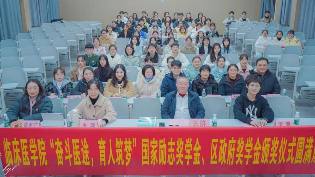 为表彰先进,树立标杆,3月9日下午,临床医学院在乐群校区T教楼T1教室举行国家励志奖学金、区政府奖学金颁奖典礼。临床医学院(附属医院)党委副书记王群、各辅导员老师及获奖同学们参加典礼。