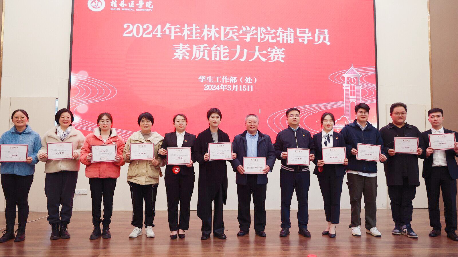 3月13日至15日,桂林医学院举行2024年辅导员素质能力大赛。本届大赛分为基础知识测试、谈心谈话、案例研讨三个环节,将辅导员理论素养提升和工作能力提升紧密结合,全面考察和展示辅导员的理论水平、职业能力和专业素养。