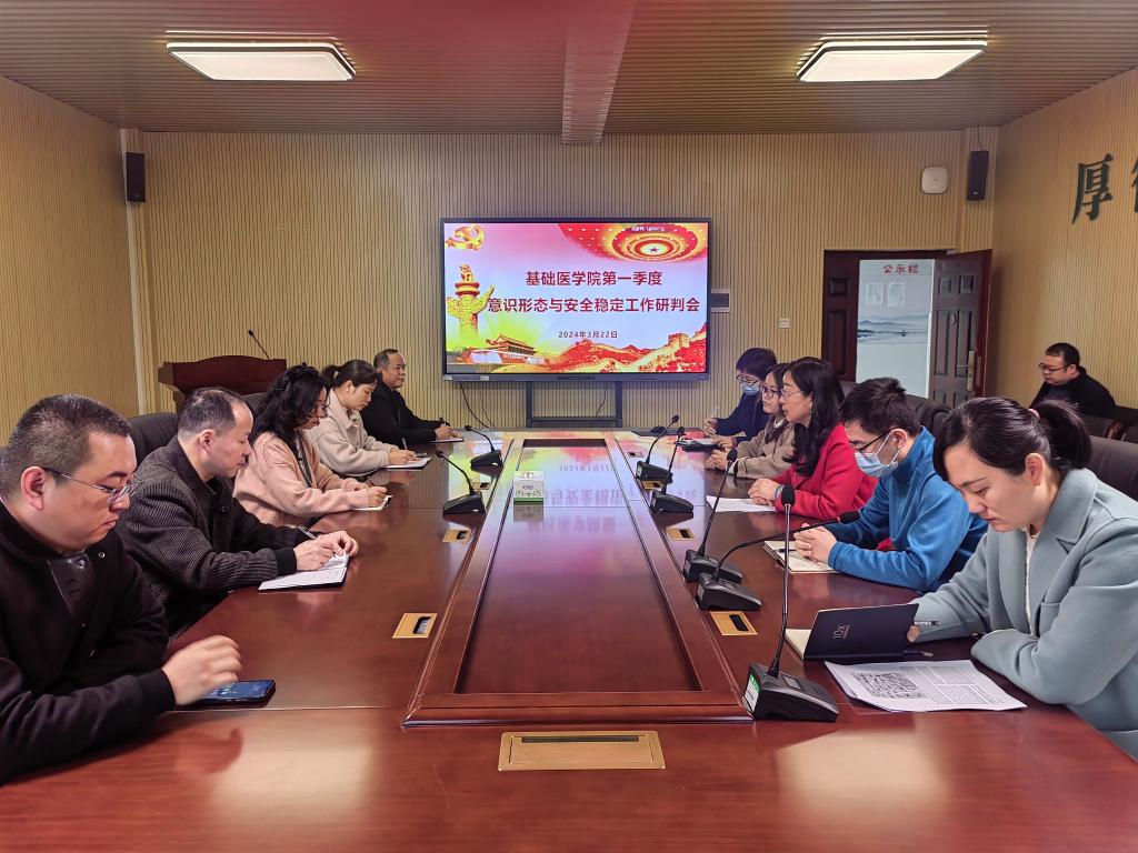 3月22日上午,基础医学院召开第一季度意识形态与安全稳定工作研判会,学院党政领导,各教研室、重点实验室负责人参加了会议,会议由党委书记朱开梅主持。