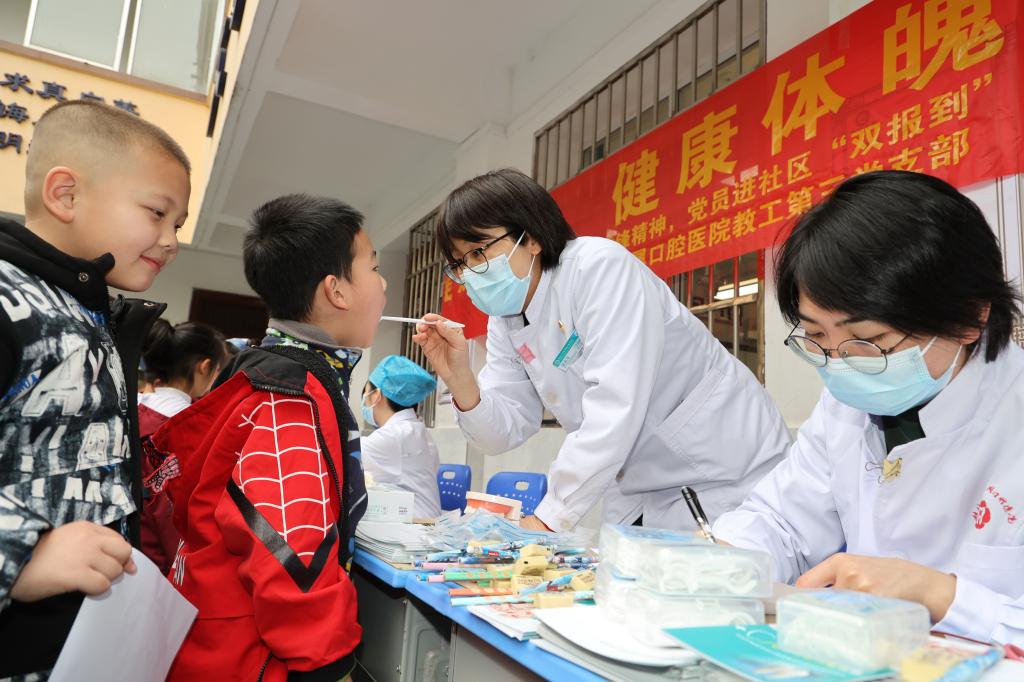 为增强学生的爱牙护牙意识,近日,附属口腔医院教工第三党支部到桂林市东江小学开展“学雷锋·文明实践我行动之‘童’享健康 爱从‘齿’开始”公益义诊主题活动。