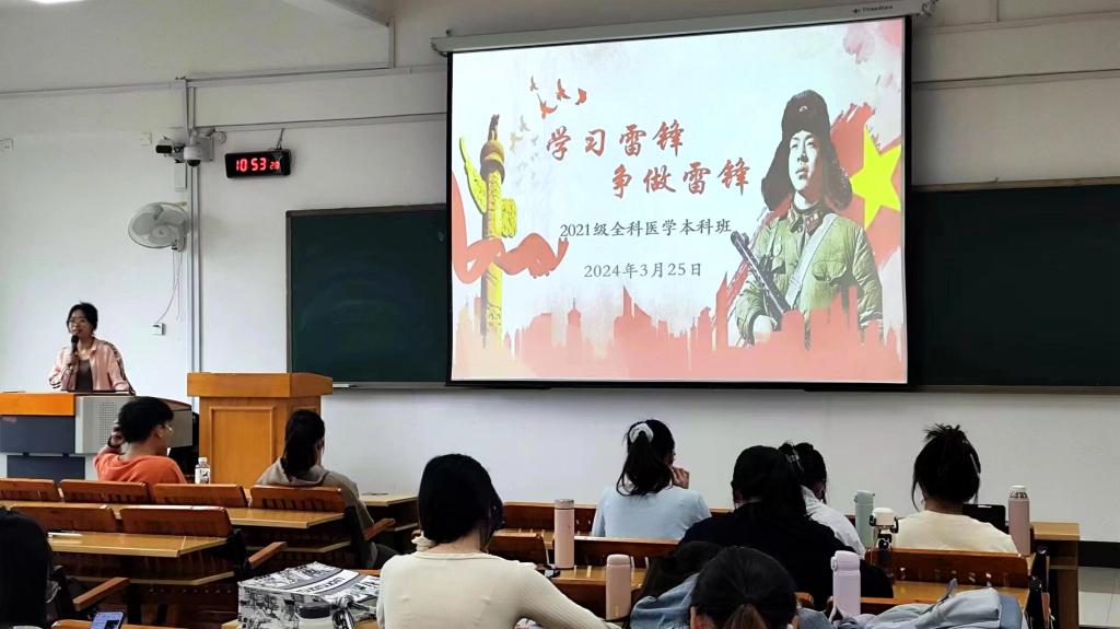 为引导同学们深入学习雷锋精神,领悟其时代价值,将雷锋精神内化于心、外化于行。全科医学院组织各团支部开展主题鲜明、内容丰富的理论宣讲活动。各团支部书记作为主讲人,以生动的语言和丰富的案例,向同学们详细介绍了雷锋同志的生平和事迹,深入剖析雷锋精神的内涵,强调无私奉献、助人为乐、艰苦奋斗等优秀品质在当代社会中的重要意义。通过讲解,同学们对雷锋精神有了更加全面、深刻的认识。宣讲过程中,各团支部还通过播放雷锋相关的视频资料,让同学们更加直观地感受雷锋精神的魅力。
