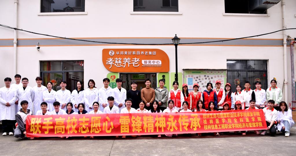 为进一步弘扬雷锋精神,形成尊老爱幼的良好风尚。3月23日上午,全科医学院组织学生志愿者,联合桂林生命与健康职业技术学院康复学院、桂林信息工程职业学院经济与管理学院走进桂林市孝慈轩社区开展关爱老人志愿服务活动。活动中,志愿者们陪伴老人聊天、晒太阳,倾听他们的故事,分享青春的快乐,让老人们在欢声笑语中感受到社会的关爱。同时,志愿者们充分发挥医学院校的专业特色,为为老人按摩身体,进行简单的康复技能操作,提供测血糖、量血压等健康检查服务,确保老人们的身体状况得到及时关注与照顾。最后,志愿者们还进行了健康宣传,发放健康传单,普及健康知识,提高老人们的健康意识。
