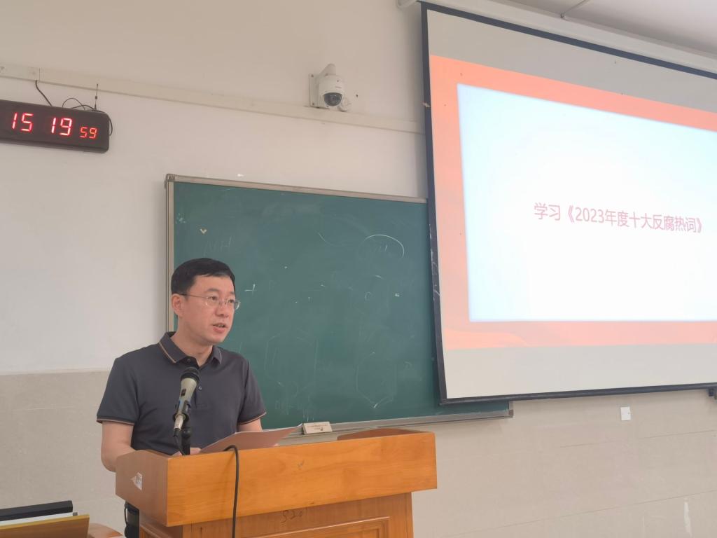 学院党委书记黄月圆传达学校2024年全面从严治党暨全面深化清廉学校建设工作会议精神,要求学院师生认真学习贯彻落实学校会议精神。
