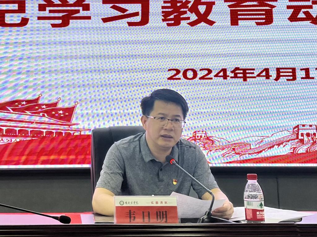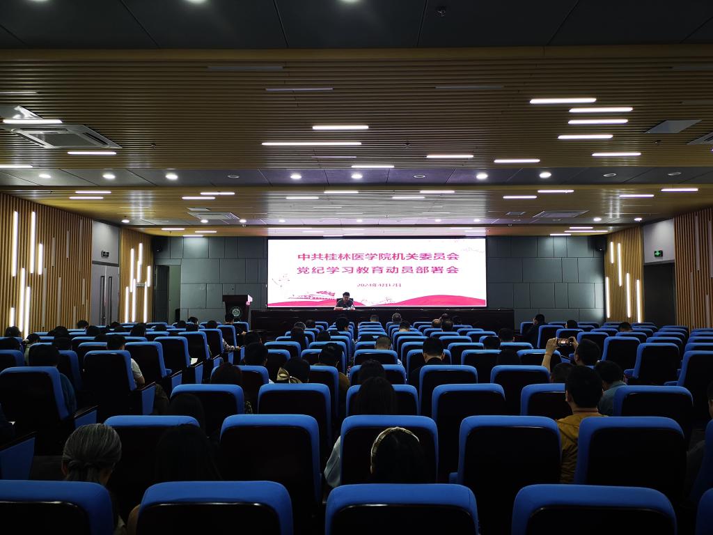 4月17日下午,机关党委在临桂校区科学实验中心一楼多功能报告厅召开党纪学习教育动员部署会,校党委组织部部长、机关党委书记韦日明主持会议并作动员讲话。