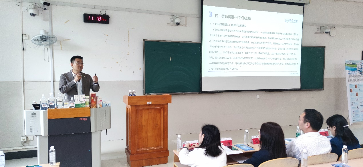 谢鹏以“你选择怎样的人生”为题开展宣讲。他结合自身的职场经历,从就业选择、行业分析、明确目标、平台选择和企业家精神等方面分享了对行业的理解以及如何在职场中获得成功的心得体会,以通俗易懂的方式为同学们分析行业情况,并提醒同学们要调整就业期望,不断提升自己的专业能力和综合素质。黄月圆表示感谢广西科伦制药有限公司对学院毕业生就业工作的大力支持,谢鹏总经理带来的不仅是深度的就业指导,更是一堂生动的思想政治教育课,为毕业生提供了宝贵的就业机会,有助于毕业生们选择好第一份工作,选对正确的求职道路,期望今后校企双方在实践教学、科研创新、人才培养等方面有更深入、广泛的合作。