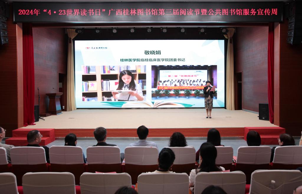 为学习贯彻党的二十大精神,贯彻落实习近平总书记关于推动全民阅读、建设书香社会的重要指示精神,4月20日上午,临床医学院、临桂临床医学院在全校范围内招募3个阅读小组、100名学生志愿者,参与由桂林市文化广电和旅游局主办,广西桂林图书馆承办的广西桂林图书馆第三届阅读节暨公共图书馆服务宣传周、“纪念西南剧展80周年——欧阳予倩生平展”启动仪式。