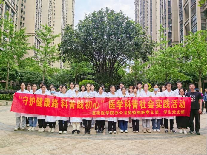4月23日,由基础医学院办公室组胚免疫党支部、学生党支部联合举办,基础医学院团委“红细胞志愿服务队”承办的健康服务宣讲活动在兴汇城小区开展。