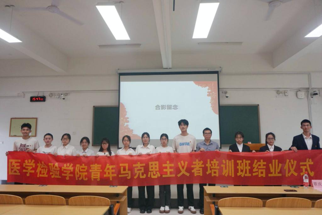 结业典礼在激情昂扬的共青团团歌中拉开帷幕。医学检验学院团委书记为活动致辞,他肯定了学院第三期“青马工程”卓越班开班一年来的成绩,对即将结业的三期学员表示祝贺,同时向在场学员提出三点希望:一要坚定理想信念,加强理论素养;二要坚持学习科学文化知识,积极参与社会实践活动,在实践中找答案、求真理;三要继续发扬艰苦奋斗的精神,不断追求卓越、勇攀高峰。