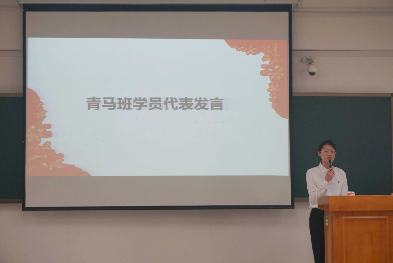 第三期“青马工程”卓越班优秀学员分享了自己在青马班的学习经历和成长感悟,期望青马学子在今后的学习、工作、生活中做到率先垂范,以身作则,不断提升自己的综合素质和能力水平。第四期青马班成员代表号召青马学员要培养远大的理想抱负、扎实的理论功底和广泛的实践能力,努力成为马克思主义的坚定信仰者、深入学习者和忠实践行者。会上,为第三期优秀学员颁发了荣誉证书及结业证书。