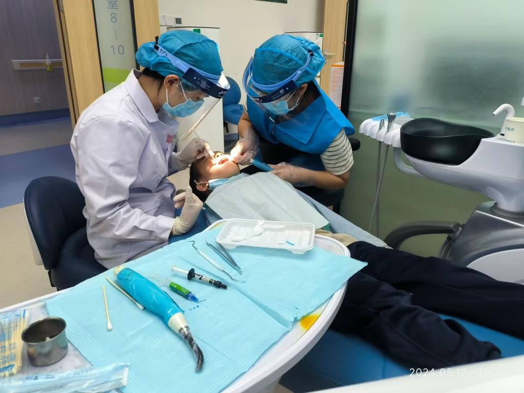 当天上午,志愿服务队成员组织60名医学生在第二附属医院口腔治疗中心参观学习。带教老师带领学生参观消毒间、清洗间、无菌储藏室、牙周治疗室、口腔诊室等与口腔治疗相关的工作室,让学生熟悉工作环境并体验工作氛围,加深了对科室的了解。随后,学生志愿者在口腔诊室进行为期1天的“职场体验”。经过带教医生规范的岗前培训和准备工作,学生志愿者积极参与口腔治疗中心的各项辅助工作,包括患者引导服务工作、操作配合工作,以及协助老师整理和填写相关资料等。通过参与此次活动,学生初步熟悉口腔治疗的工作环境,了解口腔诊疗的流程,感受到医护人员工作的不易。