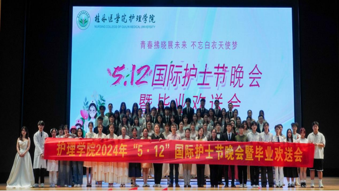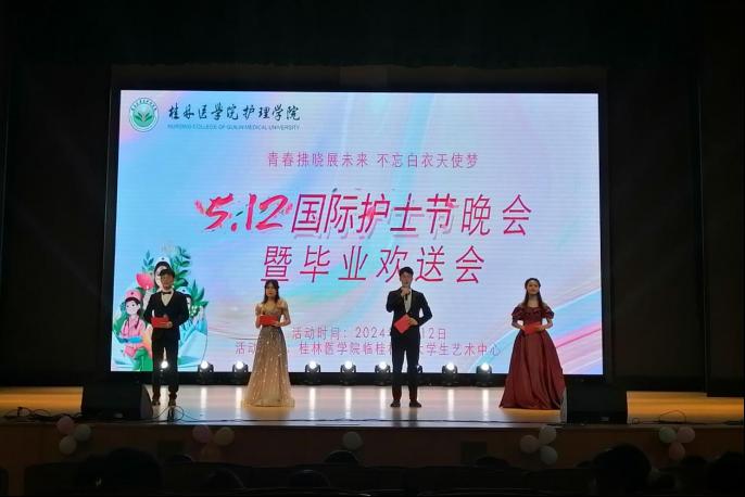为纪念第113个国际护士节,欢送2024届毕业生,5月12日晚,护理学院2024年5•12国际护士节晚会暨毕业欢送会在临桂校区大学生艺术中心隆重举行。护理学院党政领导、附属医院护理前辈代表、护理学院师生等近800人欢聚一堂,共同庆祝这个盛大的节日。