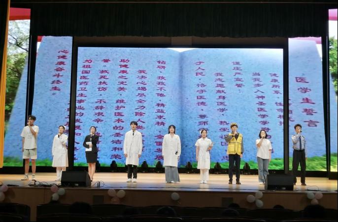 晚会上,护生学子以歌舞、朗诵、礼仪、情景剧表演等艺术形式向大家展示了新时代护生的风采,向毕业生传达了依依惜别之情和深深美好祝愿。歌曲《所愿》、情景朗诵《谱写青春华章》、器乐表演《我记得》等节目怀揣着热忱之心感念前辈的引领,鼓励大家珍惜青春,勇敢追求梦想和目标;护理礼仪《恰似一缕微光》以情景剧形式展现了护生礼仪之美,更表现了对生命的尊重和热爱;歌曲《不忘初心——少年》及毕业班带来的校歌合唱以动人的旋律和真挚的情感,感染了现场的每一位观众,唤起了大家对校园生活的美好回忆。