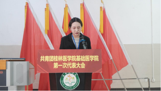 大会伊始,伴随着庄严的国歌,基础医学院团委指导老师代表基础医学院致开幕词并宣布共青团桂林医学院基础医学院第一次代表大会隆重开幕。