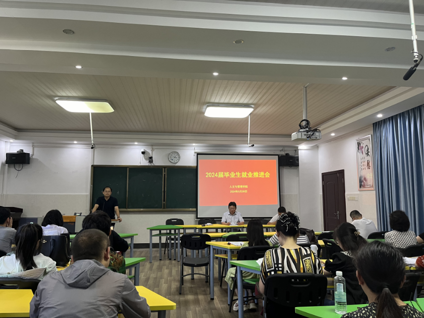 5月28日下午,人文与管理学院在人文楼208会议室召开毕业生就业工作推进会。学院全体党政领导、教职工及毕业班大学生导师与班主任参加会议。