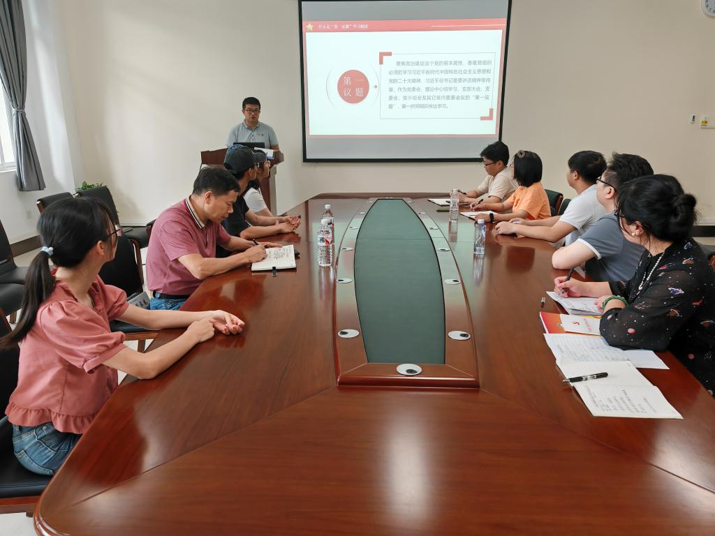 潘涛以“规范落实‘第一议题’制度”为主题,从“什么是‘第一议题’制度”、“‘第一议题’的内容”、“如何落实‘第一议题’制度”等三个方面,结合校内巡察反馈情况及学院实际对如何规范落实“第一议题”制度进行详细讲解。